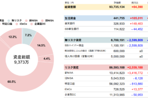 前月に引き続き、今月も資産は増えましたが、前年末比ではまだ106万円のマイナスです。今年に入って資産は増えているようで増えていません。