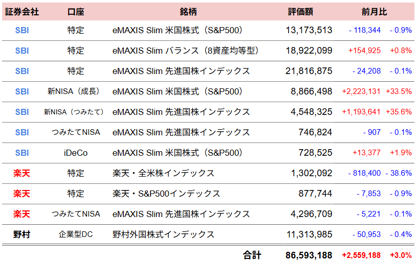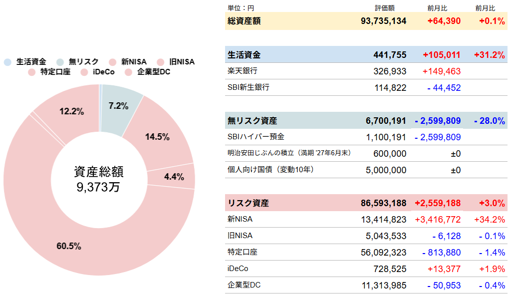 総資産額は9,373万(前月比+6万)という結果になりました。